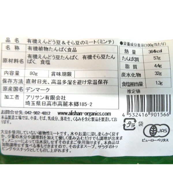 有機えんどう豆&そら豆のミート(ミンチ)(80g)【アリサン】