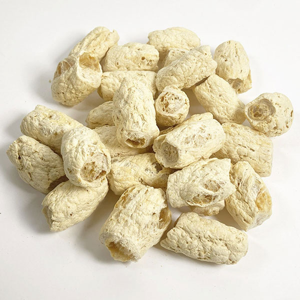 えんどう豆とそら豆のたんぱくで作られた植物性ミートです。柔らかくなるまでお湯に浸し、軽く絞ってからお使い下さい。