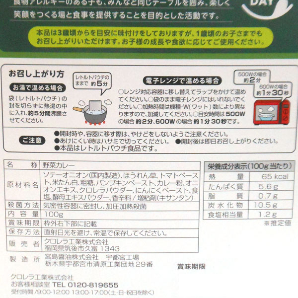 【2月新商品】野菜のごほうび こどもカレー(100g)【クロレラ工業】