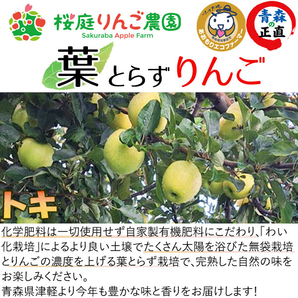 【今季完売】【特選】無袋栽培トキ 青森産りんご 中玉(約10kg)無化学肥料【桜庭りんご農園】【直送につき代引・同梱不可】【送料無料】【クーポン券使用不可】