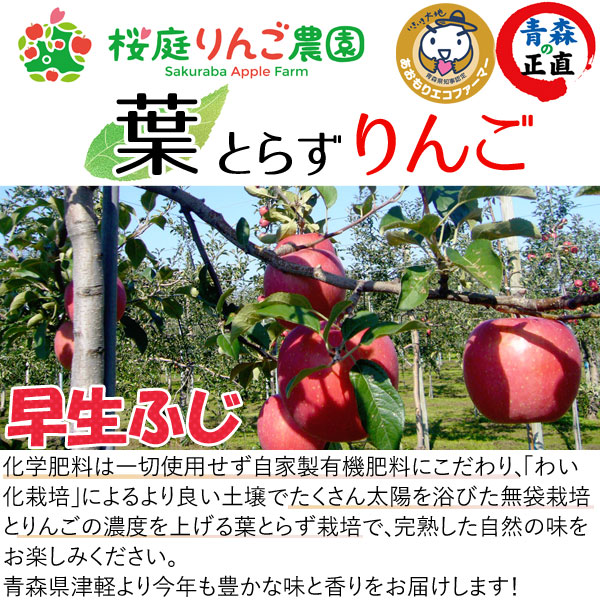 【今季完売】【特選】無袋栽培早生ふじ 青森産りんご 中玉(約10kg)無化学肥料【桜庭りんご農園】【直送につき代引・同梱不可】【送料無料】【クーポン券使用不可】