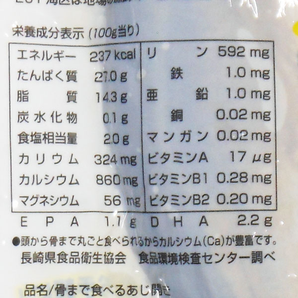 【原材料】真あじ(長崎県産)、食塩、フノリ