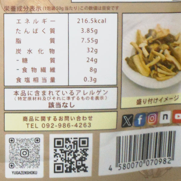 【原材料】椎茸、エリンギ、ぶなしめじ、はたけしめじ、おおひらたけ、植物油、麦芽糖シロップ、食塩