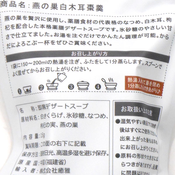 【2月新商品】熱湯1分 燕の巣白木耳棗羹 薬膳デザートスープ(15g)【癒雅】【クーポン券使用不可】