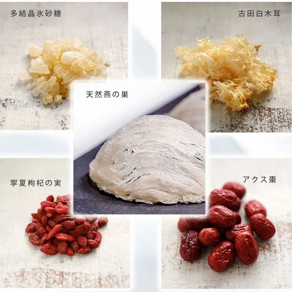 【原材料】白キクラゲ、氷砂糖、なつめ、枸杞の実、燕の巣