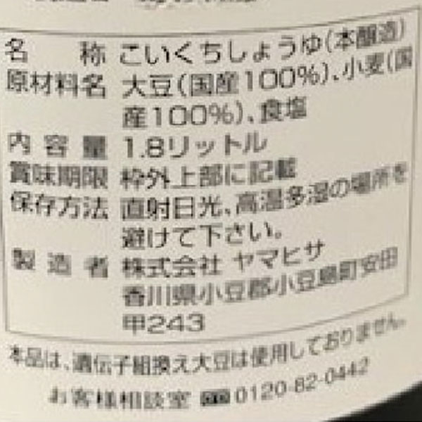 【原材料】大豆(福岡県産他)、小麦(香川・北海道産他)、食塩(オーストラリア産他)