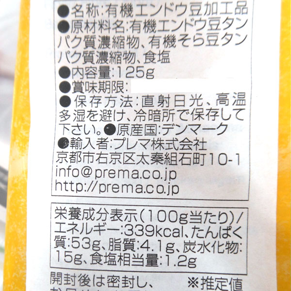 【原材料】有機エンドウ豆タンパク質濃縮物、有機そら豆タンパク質濃縮物、食塩