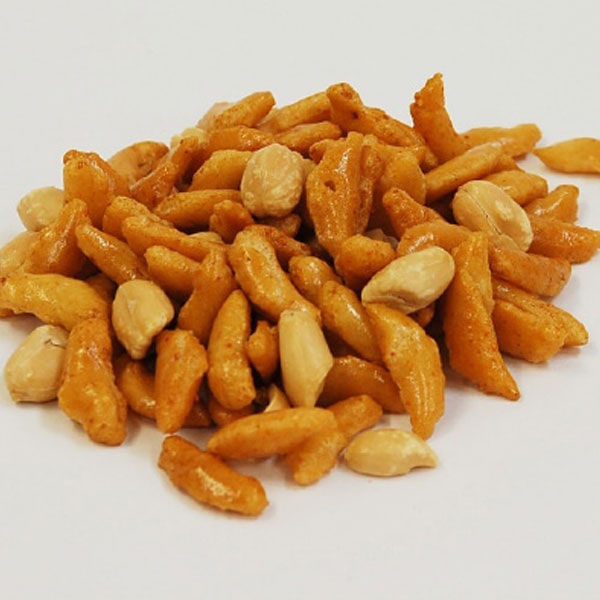 【原材料】もち米(国内産)、ピーナッツ(アメリカ産)、有機たまり醤油、植物油脂、麦芽水飴、食塩、香辛料、カツオ粉末、シイタケ粉末、昆布粉末(一部に落花生・大豆・ごまを含む)