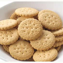 【商品説明】原材料に卵・乳不使用。国内産小麦粉が主原料の生地を焼き上げた、ほんのり甘いビスケットです。ノンフライタイプのミレービスケット。