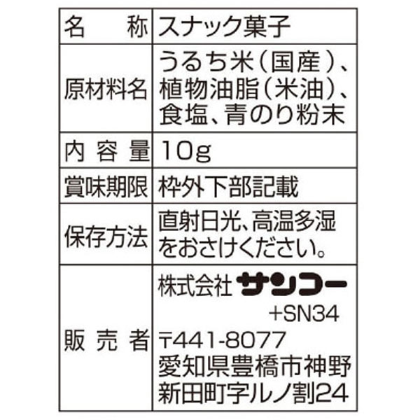 【原材料】うるち米(国産)、植物油脂(米油)、食塩、青のり粉末