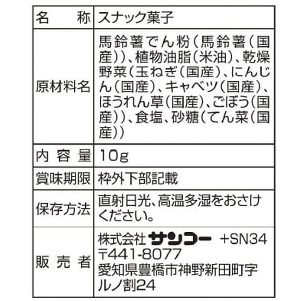 【関連ワード】野菜スナック,スナック,駄菓子,スナック菓子,おかし,お菓子,おやつ,株式会社サンコー