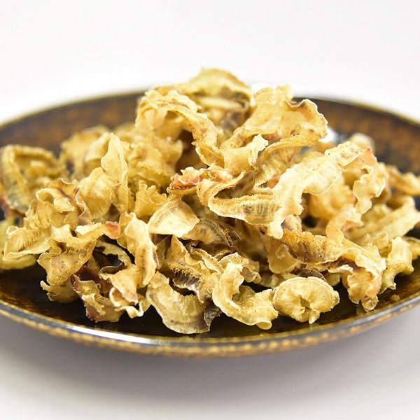 アミノ酸などの調味料や保存料を一切使わず、てん菜糖、食塩、お出汁、さんま魚醤を使用して仕上げました。熟練の作り手によって、外気温や湿度、材料の水分量を見ながら乾燥時間を調整し、程よくソフトな食感の貝ひもに焼き上げています。