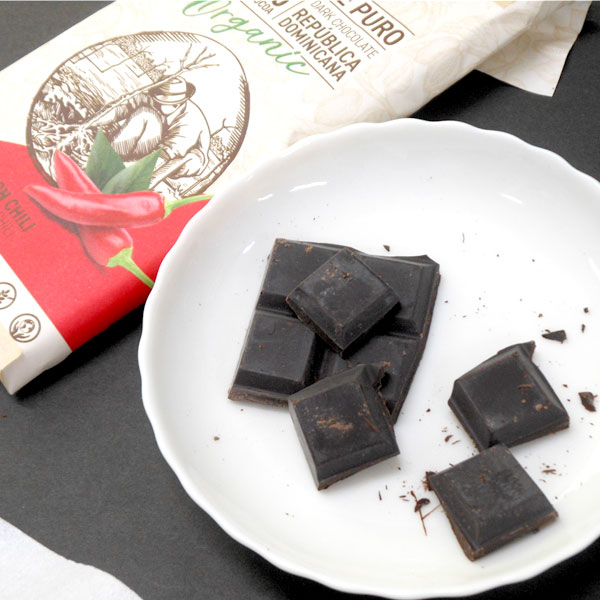 濃厚でビターな香りが口に広がる、カカオ73%のダークチョコレートです。スペイン産チリパウダー(0.3%配合)の辛味がアクセントの、癖になる味わいです。