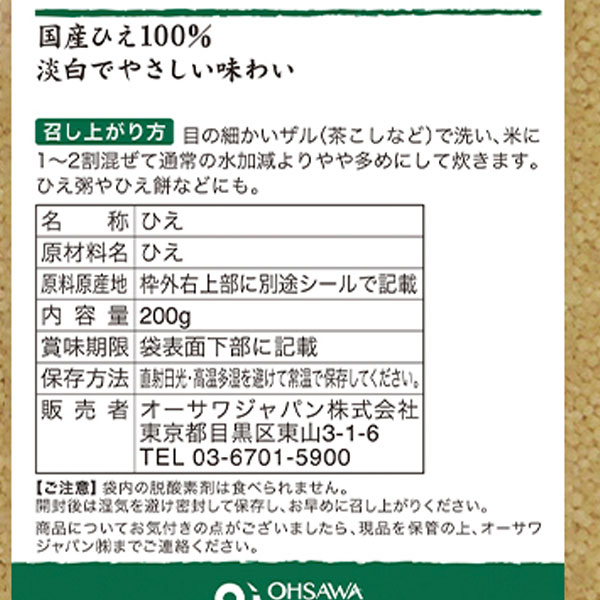 岩手県・北海道産のひえを使用した、農薬・化学肥料不使用の安心・安全な雑穀です。