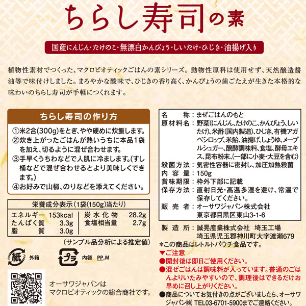 オーサワの具だくさん ちらし寿司の素(150g)米2合用(2~3人前)【オーサワジャパン】