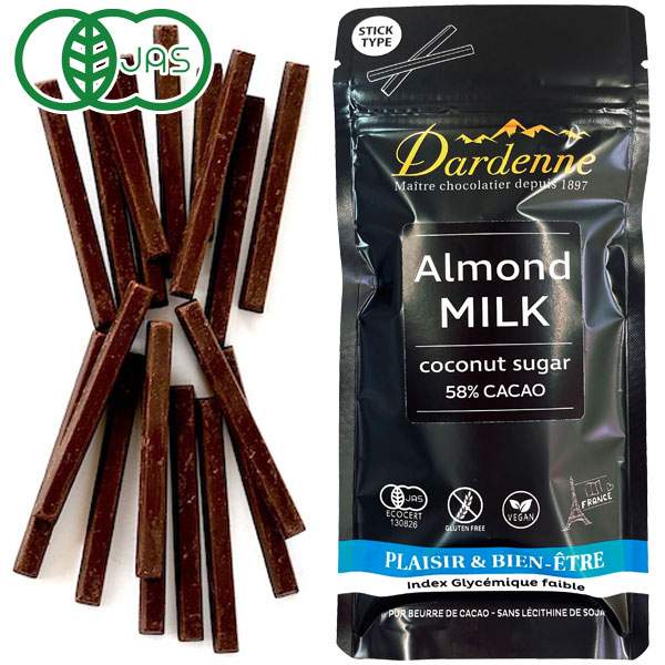 【今季完売】【秋冬限定】ダーデン 有機ココシュガーチョコレート アーモンドミルクスティック カカオ58%(48g)【アルマテラ】