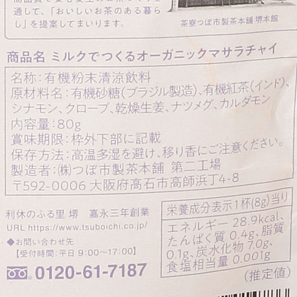 【1月新商品】ミルクでつくるオーガニックマサラチャイ(80g)【つぼ市製茶本舗】