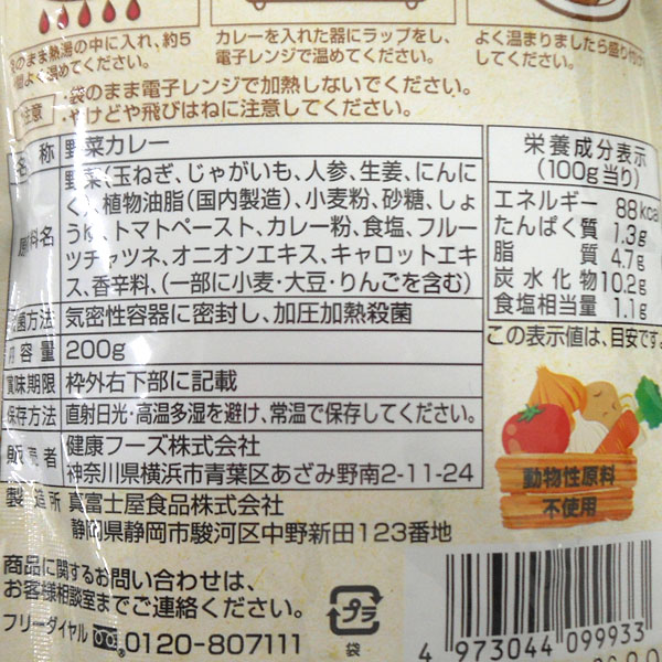 【関連ワード】ベジタブルカレー,ベジカレー,動物性不使用[菜食主義]ベジタリアン,ヴィーガン,ビーガン,Vegan,ビーカン,ヴィーカン[カレー(レトルト)]レトルトカレー,レトルト咖哩,レトルトカリー[レトルトパウチ包装]レトルトパウチ食品,レトルト食品,レトルト惣菜,れとるとぱうち,携帯食[販売]健康フーズ株式会社