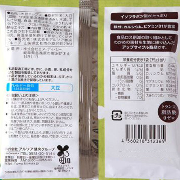 【関連ワード】国産大豆でつくった大豆チップスシリーズ,だいずチップス,スナック菓子,ノンフライ,大豆スナック,プロテインスナック,たんぱく質,タンパク質,プロテイン,イソフラボン,ダイエット,大豆ミートチップス,ソイチップス,野菜チップス,栄養補給,子供,補給[おかし]お菓子,おやつ[菜食主義]ベジタリアン,ヴィーガン,ビーガン,Vegan,ビーカン,ヴィーカン[販売]BIOKURA,ビオクラ,株式会社アルソア慧央グループ