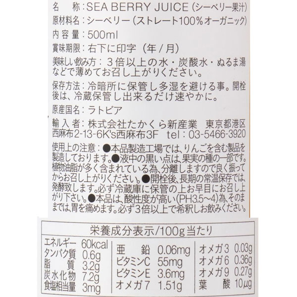 【関連ワード】シーベリージュース,沙棘ジュース,サジージュース,奇跡の果実,ホールフード,スーパーフード,オメガ脂肪酸,オメガ7,オーガニック認証,低温加工,マリア種,栄養満点,美容サポート,健康維持,無添加,必須アミノ酸,フラボノイド,ビタミン,カロテノイド,株式会社たかくら新産業
