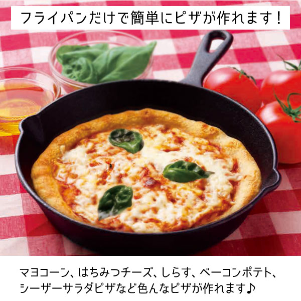 ※オーブンを使用する場合は、広げた生地にピザソース、お好みの具材をのせ、220℃に予熱したオーブンで約15~20分焼く。