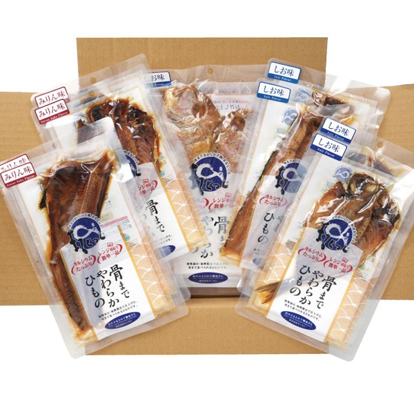 骨まで食べられる干物「まるとっと」のギフト用の詰め合わせ商品です。魚の干物が骨まで軟らかく食べられるので、小さなお子様やご高齢の方まで幅広く安心してお召し上がりいただけます。